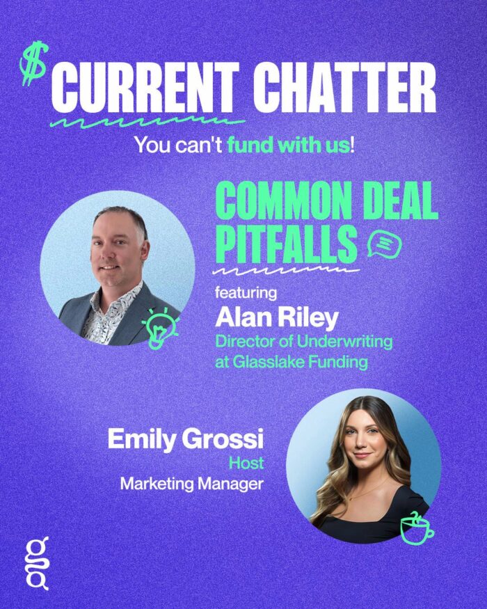 CURRENT CHATTER EP. 02 (feat. Alan) 🎥 👇 Common Deal Pitfalls: With The Director of Underwriting, Alan Riley We’re breaking down the real talk behind deal-making in the next episode of Current Chatter—Glasslake’s no-fluff, all-insight webinar series. This time, Emily Grossi sits down with Alan Riley, Director of Underwriting, to unpack: ✅ The biggest mistakes…